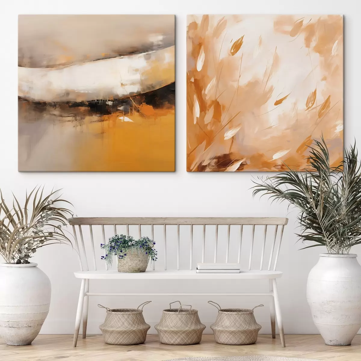 Paveikslas Abstraktus diptikas aliejaus stiliumi su geltonai oranžiniais ir juodais atspalviais Nr m00897