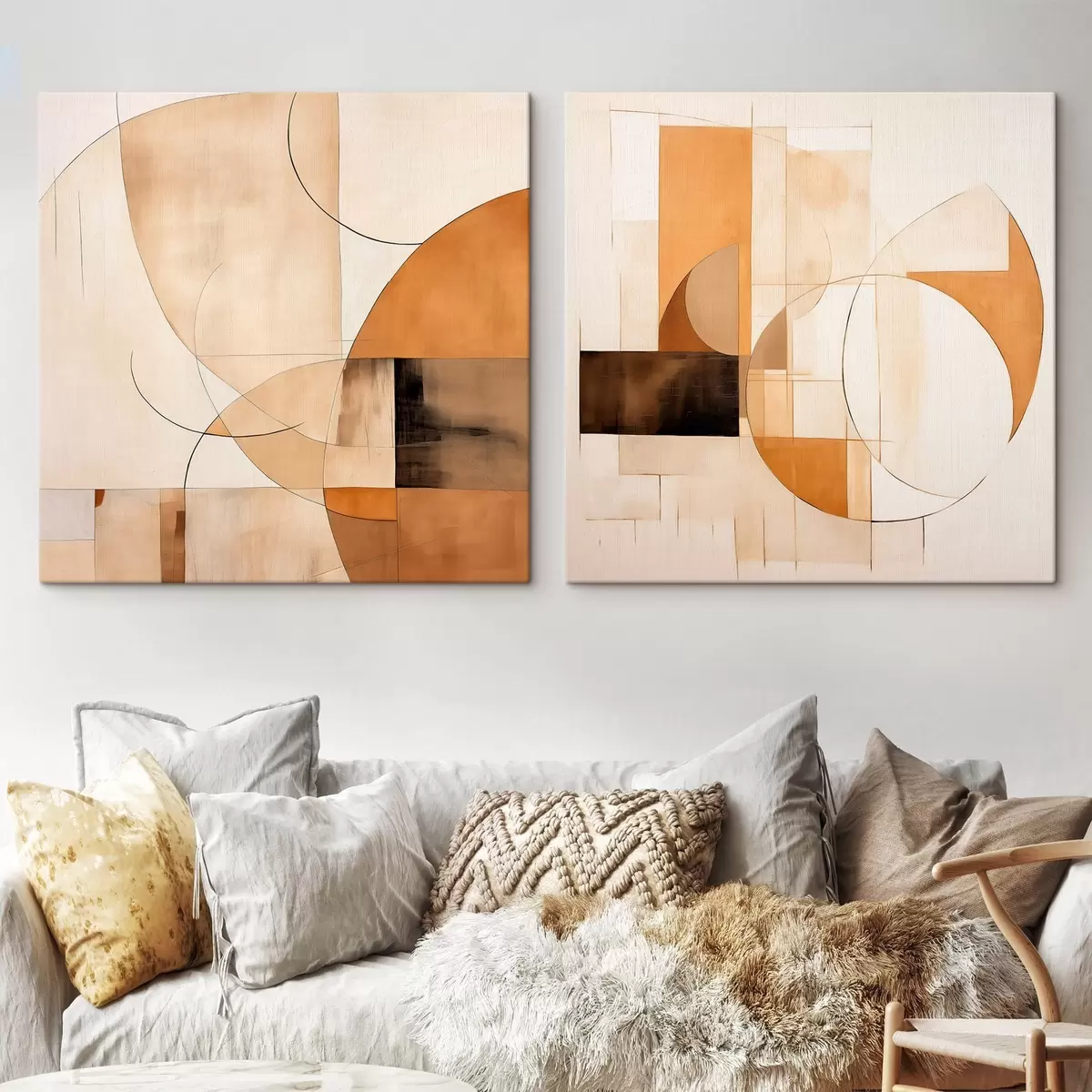 Paveikslas Šiuolaikinė abstrakcija su apskritimais ir linijomis kavos su pienu spalvomis Nr m00898
