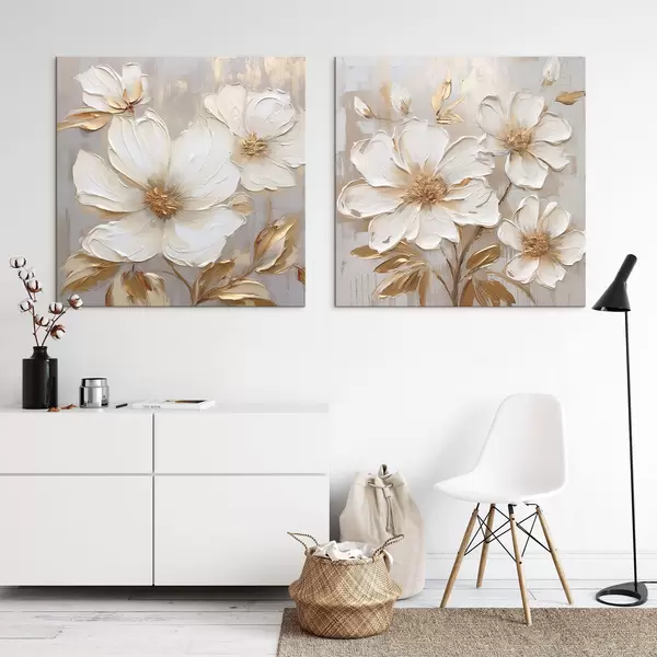 Paveikslas Diptikas su dideliais gėlių motyvais šiltų šviesių spalvų Nr m00927