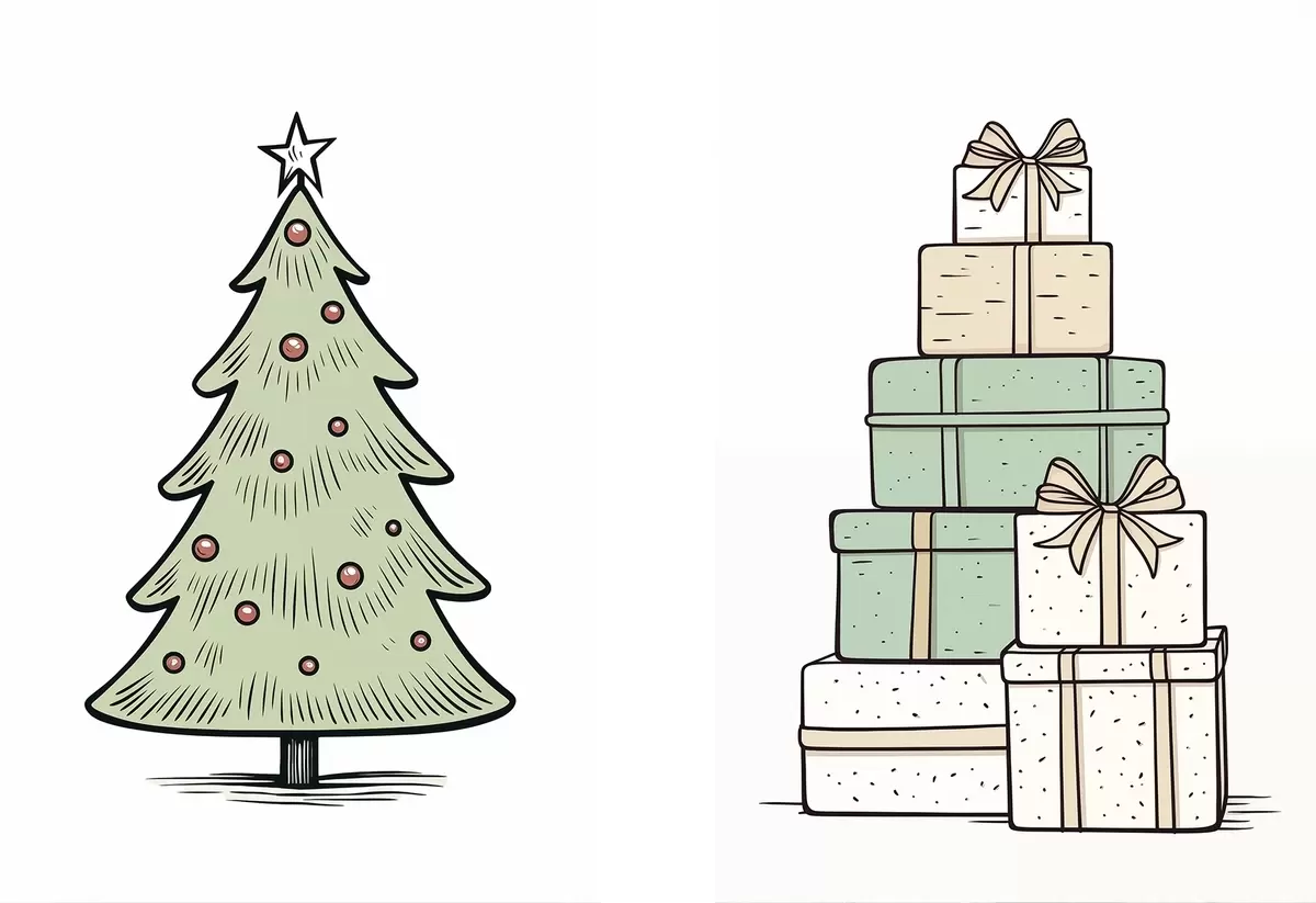 Paveikslas Kalėdų eglutė ir dovanos Nr m00953