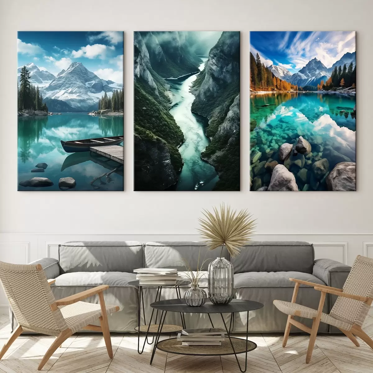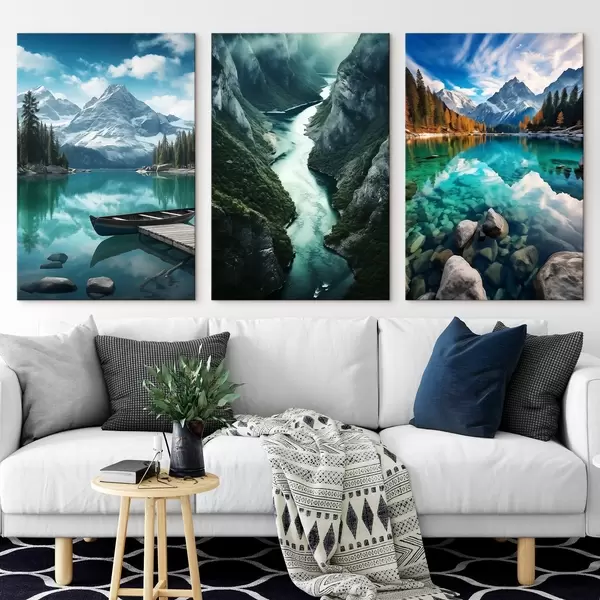 Paveikslas Alpių ežerai ir fiordų vaizdai vėsiais žalios spalvos atspalviais Nr m00961