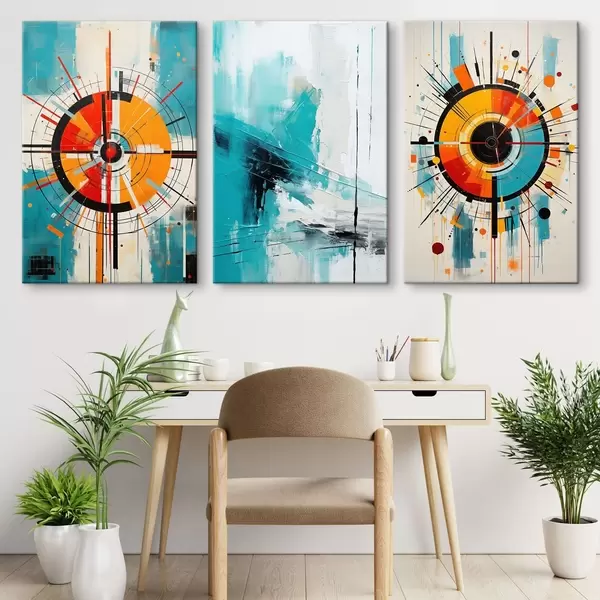 Paveikslas Radialinis abstraktas su žalios ir oranžinės spalvos pliūpsniais Nr m00973