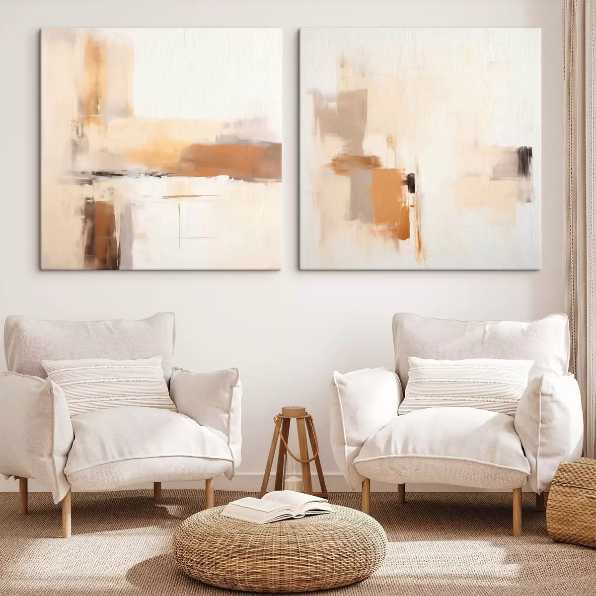 Paveikslas Stilizuota abstrakcija su šiltais atspalviais diptiko formatu Nr m00988