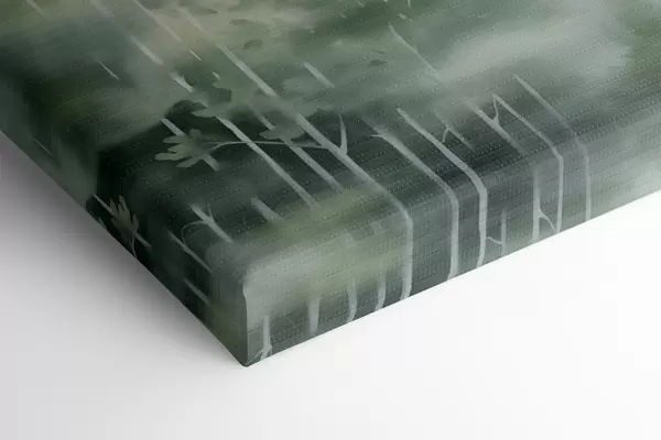 Paveikslas Akvarelės tapybos imitacija abstraktaus miško su aukštais medžiais ir žaliais lapais, švelniomis prislopintomis spalvomis Nr m01005