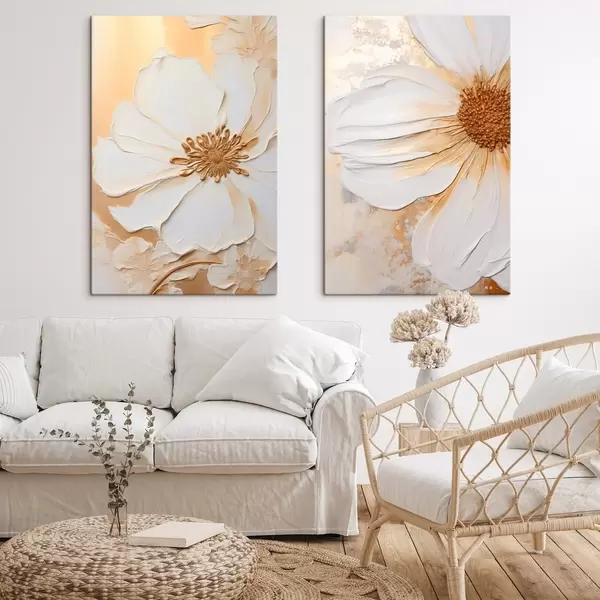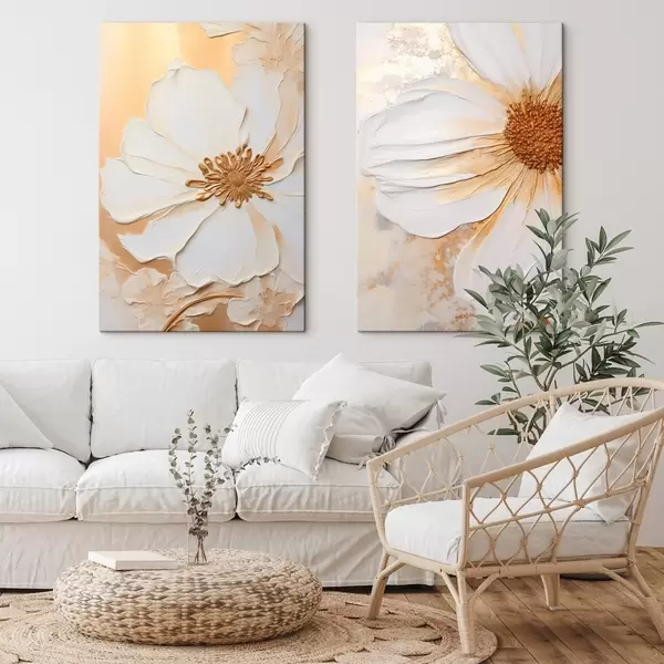 Paveikslas Balta gėlė su subtiliais žiedlapiais, tekstūruotas abstraktus fonas, elegantiškas, dekoratyvinis menas Nr m01006