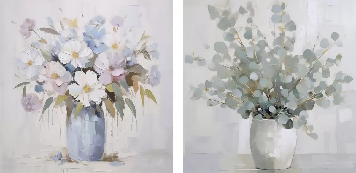 Paveikslas Gėlės ir eukalipto imitacijos tapyba Nr m01017
