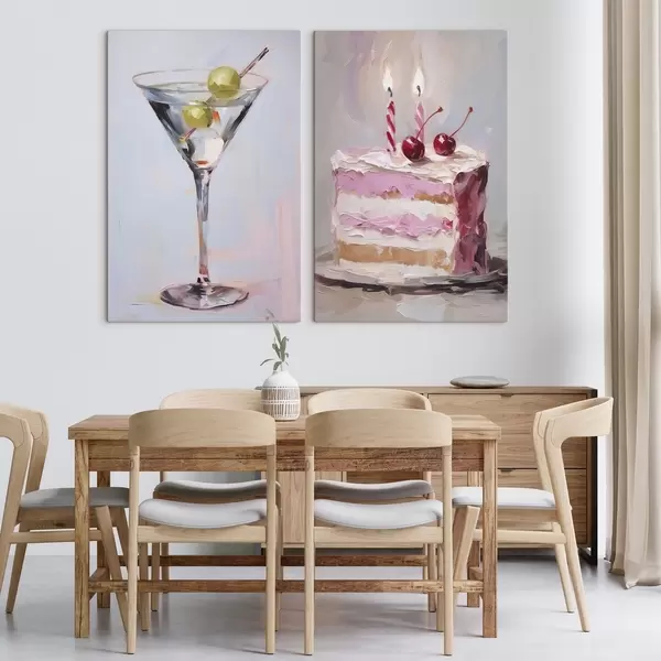 Paveikslas Stiklinė su gėrimu ir gabalėliu torto imitacija Nr m01019