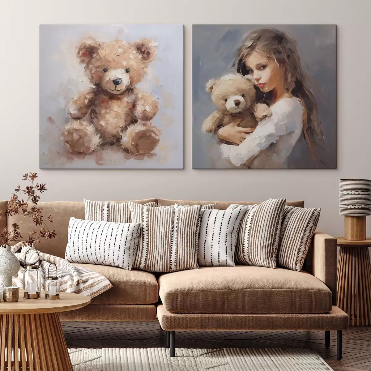 Paveikslas Mergaitė su žaisliniu meškiuku, imitacija Nr m01029