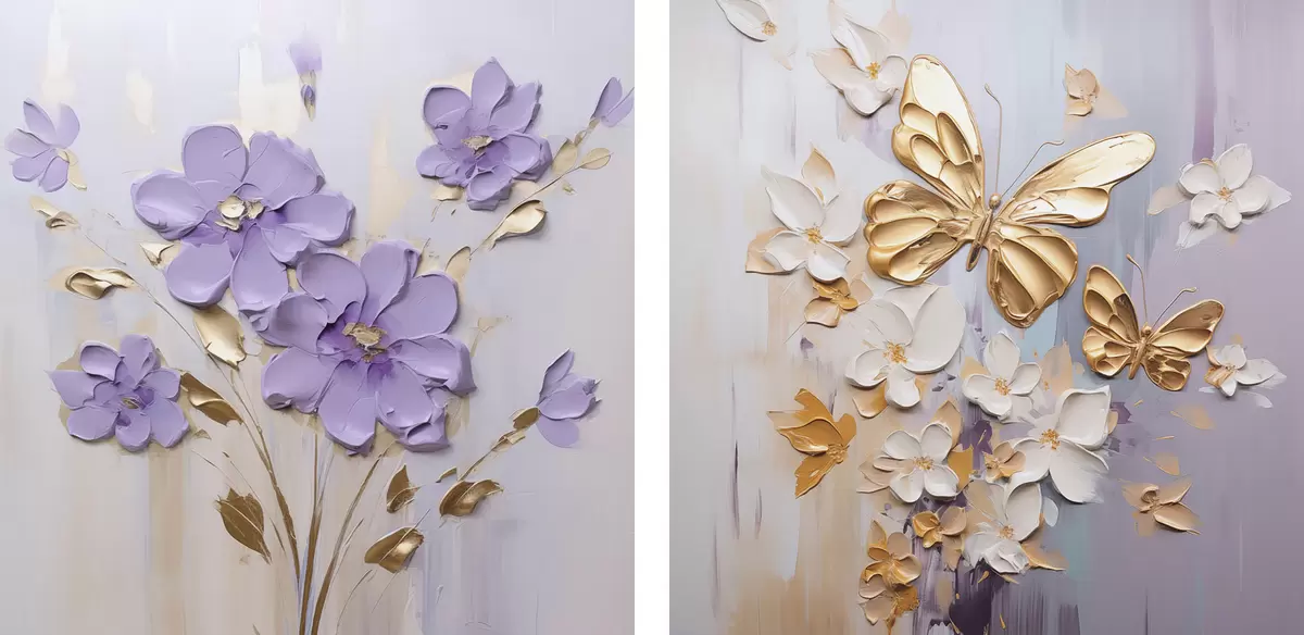 Paveikslas Drugelių ir gėlių imitacijos tapyba Nr m01046