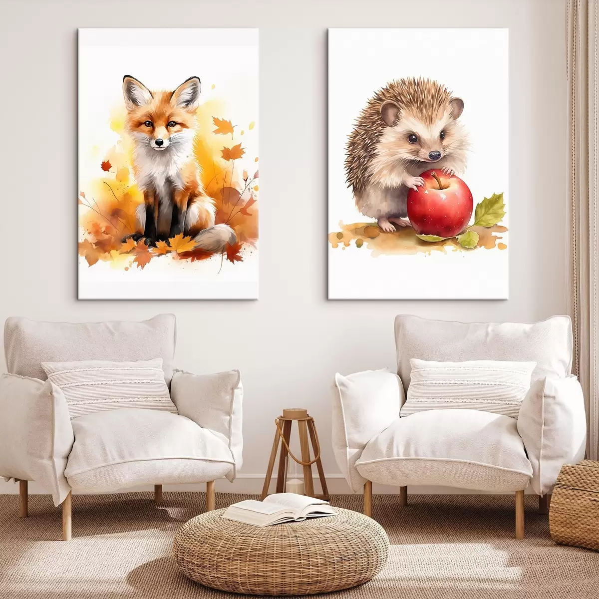 Paveikslas Lapė ir ežys, imitacija akvarele Nr m01050