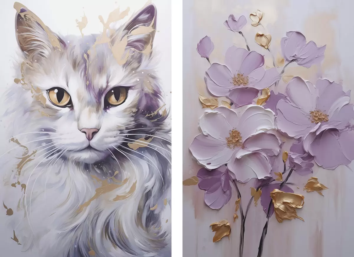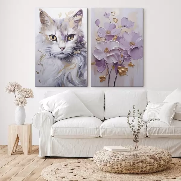 Paveikslas Abstrakčios gėlės ir katė Nr m01056