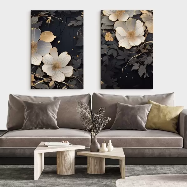 Paveikslas Didelės abstrakčios gėlės ant tamsaus fono Nr m01066