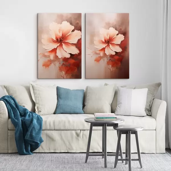 Paveikslas Gėlių kompozicija: balti ir kreminiai žiedlapiai, koralų akcentai ir švelnus miglotas fonas Nr m01088