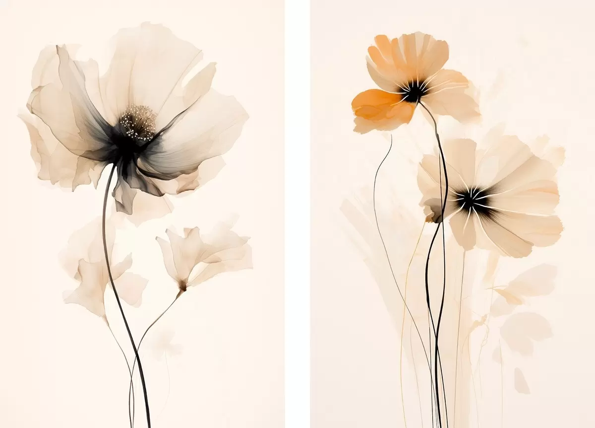 Paveikslas Šviesios akvarelės aguonos su švelniais šešėliais ir erdvės pojūčiu Nr m01091