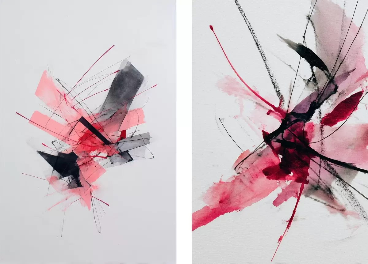 Paveikslas Šiuolaikinis abstraktusis menas su dinamiškais potėpiais ir pusiau permatomais dažų sluoksniais Nr m01094
