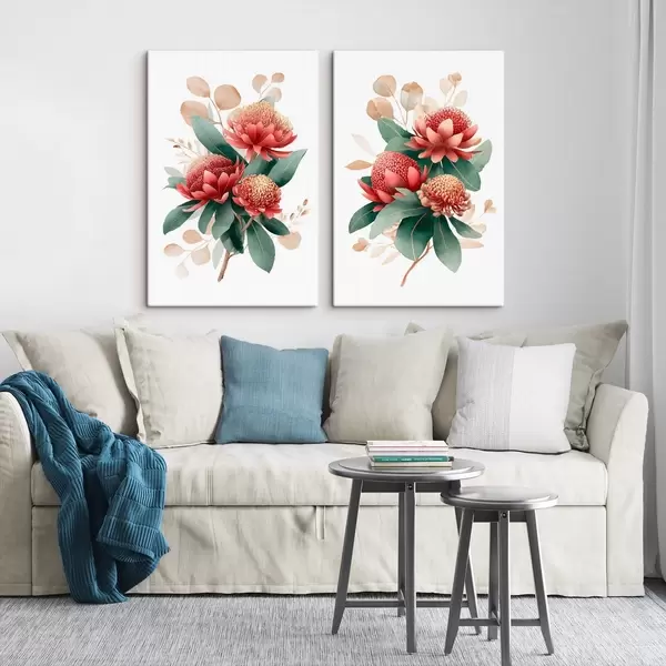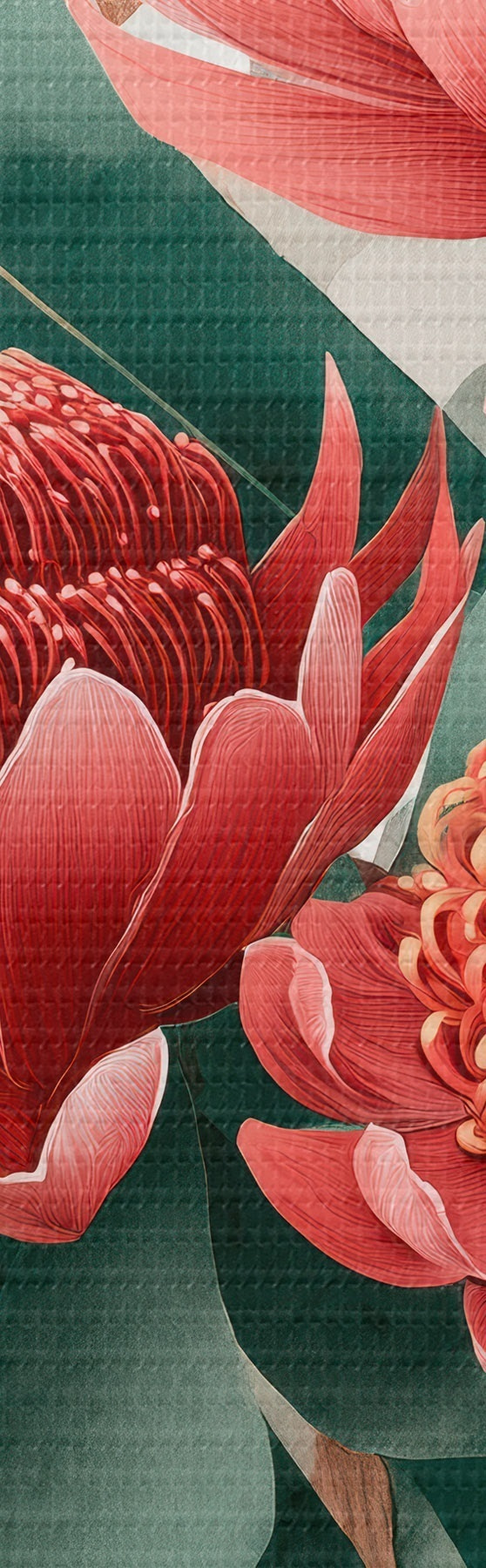 Paveikslas Gėlių kompozicija su proteomis koralų raudonos spalvos paletėje ant balto fono Nr m01096