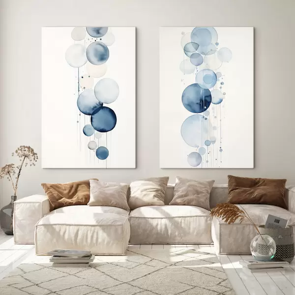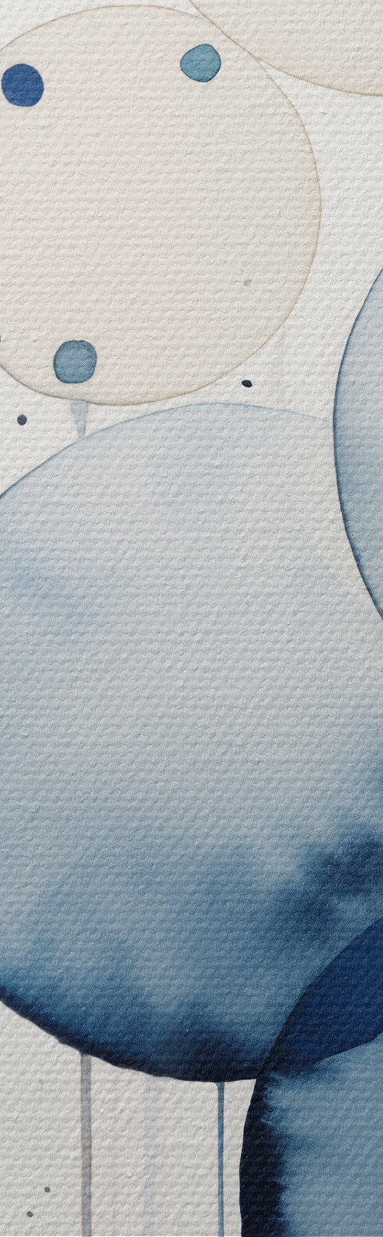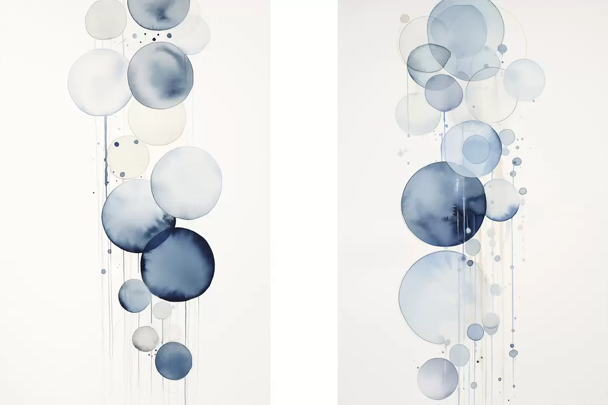 Paveikslas Abstrakčios tekstūros mėlynos ir baltos akvarelės apskritimai įvairių dydžių, ant balto fono Nr m01118