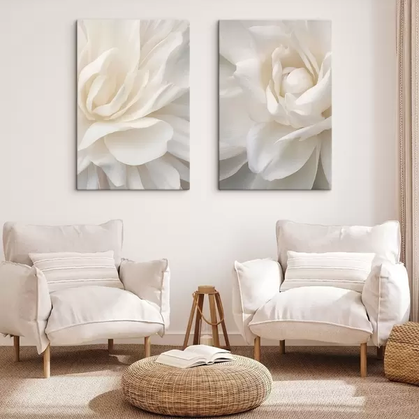 Paveikslas Abstraktaus balto gėlės su subtiliais, sluoksniais susidėvėjusiais žiedlapiais, minimalistinis menas Nr m01120