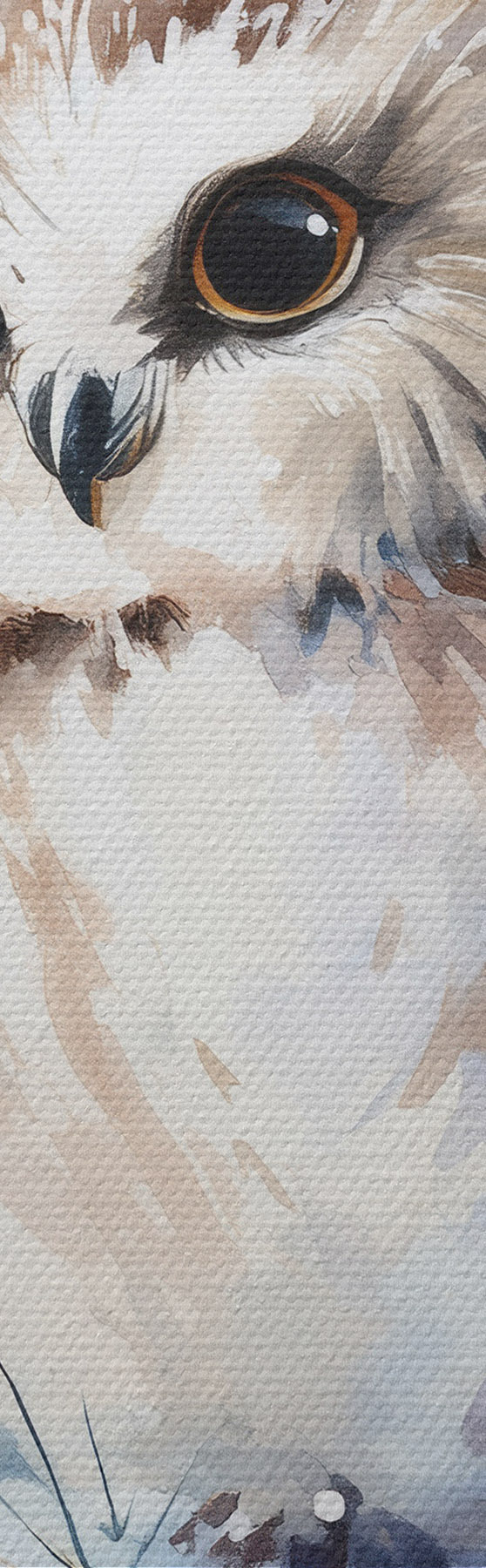 Paveikslas mielas pelėdas ant sniegu padengtos pušies šakos, tapytas akvarele Nr m01168