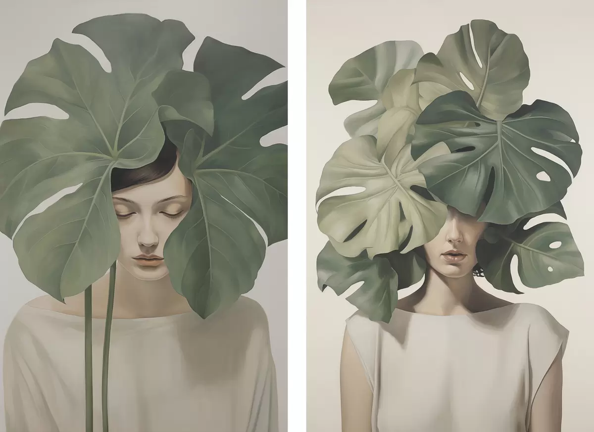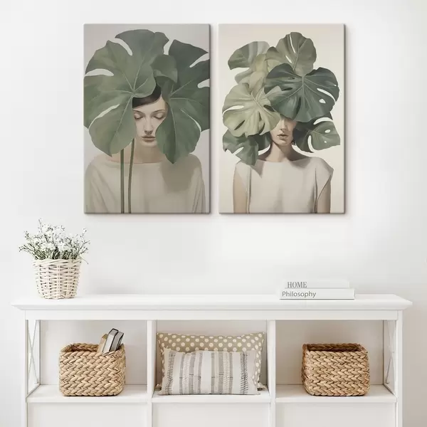 Paveikslas Mergina su lapais Nr m01185