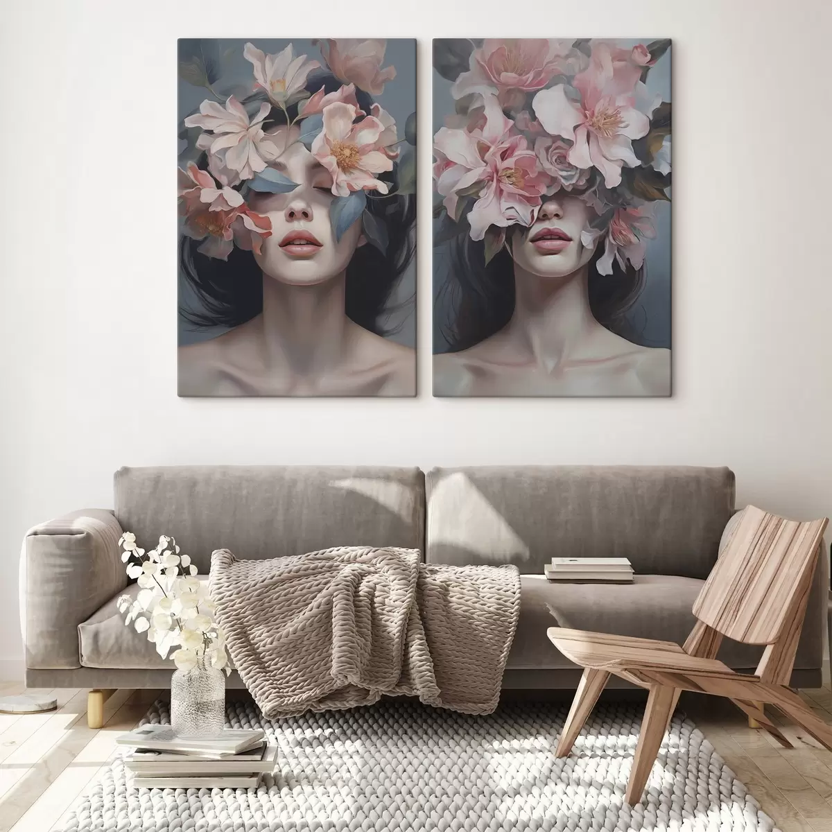 Paveikslas Abstraktus moters portretas su gėlėmis Nr m01221