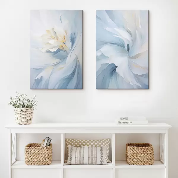 Paveikslas Abstrakčios, subtilios, permatomos žiedlapių sūkuriai, apgaubti švelniu apšvietimu ir tapybiška tekstūra. Nr m01244