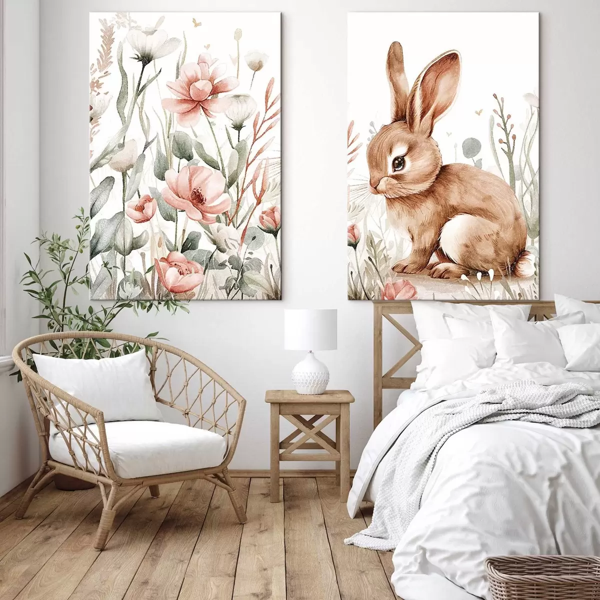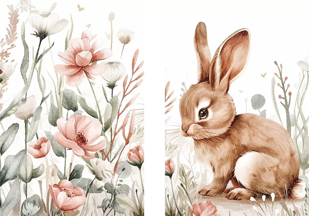 Paveikslas Kompiliacija „Kiškis gėlių apsuptyje“ Nr m01299