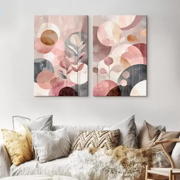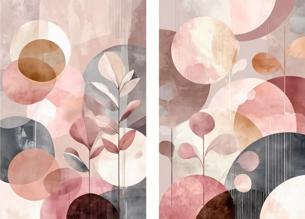 Paveikslas Gėlių menas pastelinėmis spalvomis su geometriniais elementais Nr m30036