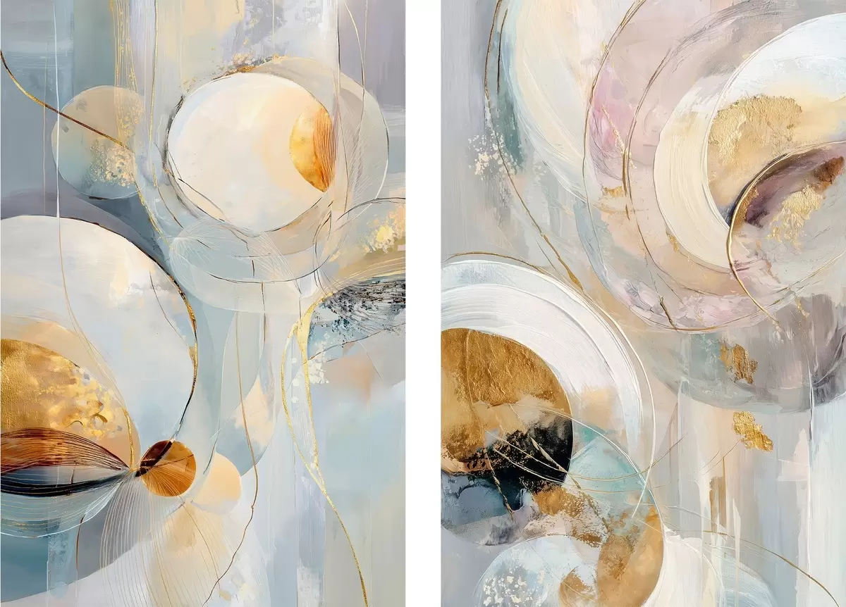 Paveikslas Meniškas diptikas su permatomais apskritimais ir išraiškingais potėpiais Nr m30038
