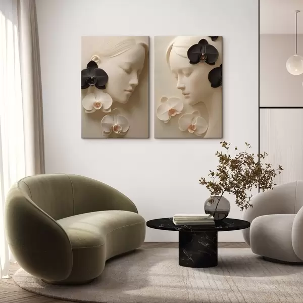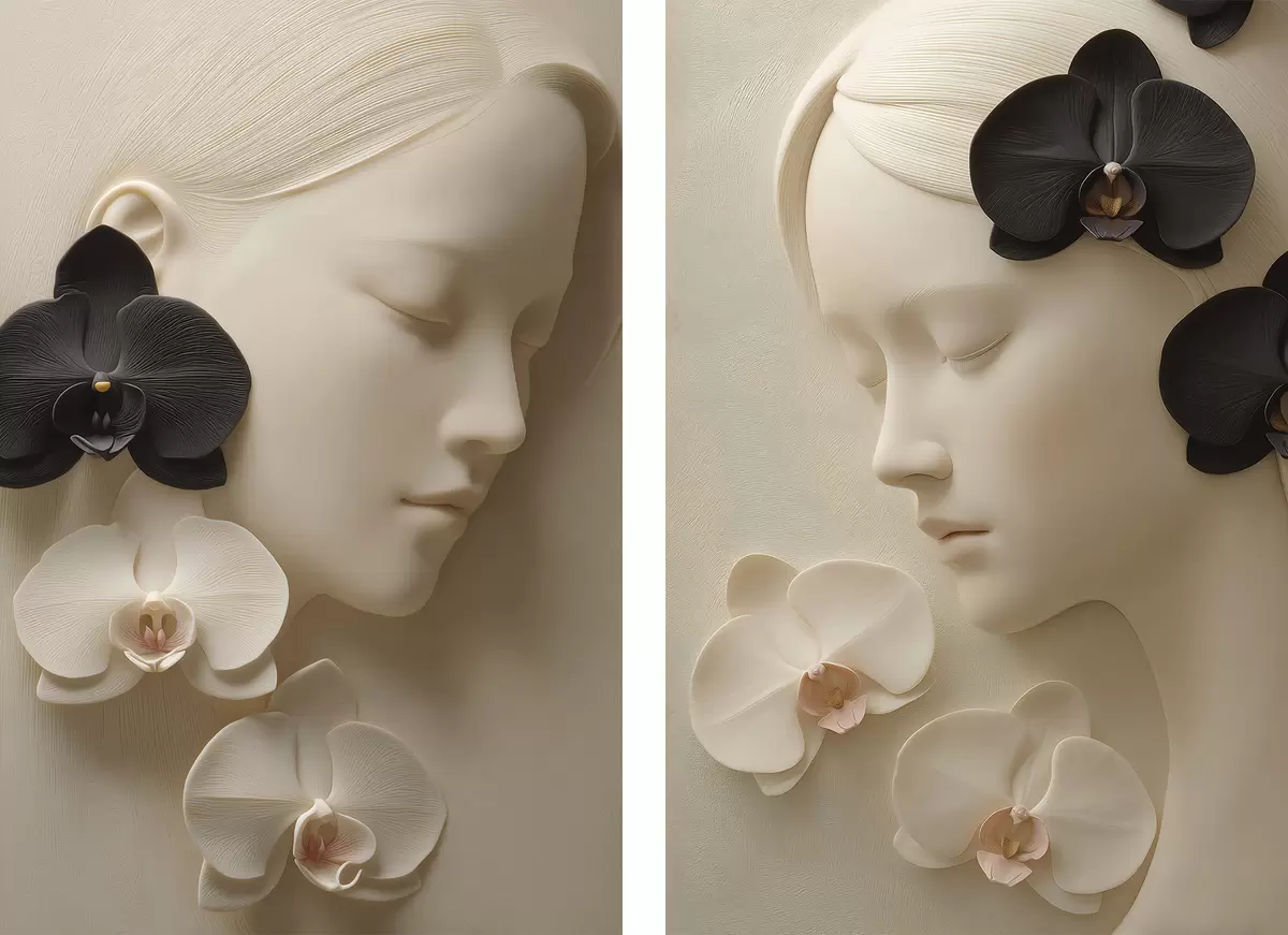Paveikslas mergina su orchidėjomis, išraižyta bareljefo stiliumi Nr m30093