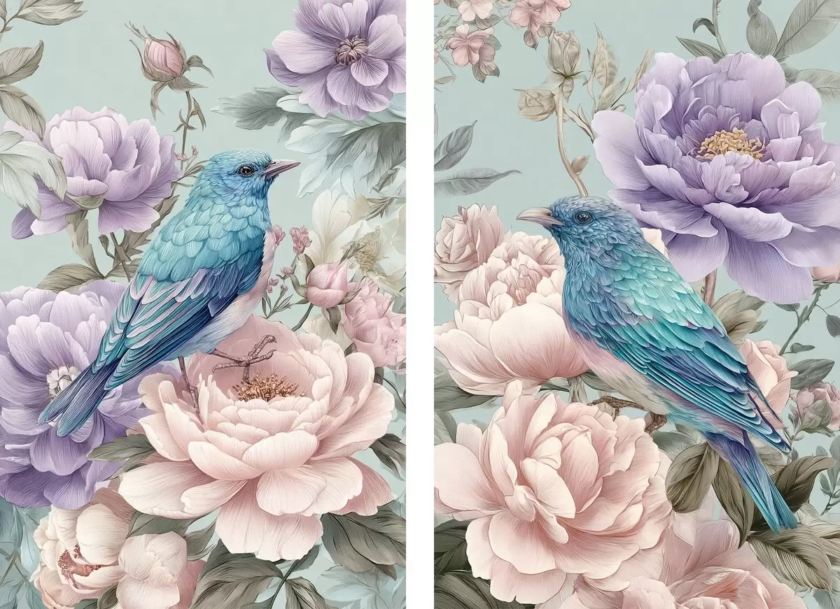 Paveikslas dainuojantys paukščiai rožėse Nr m30094