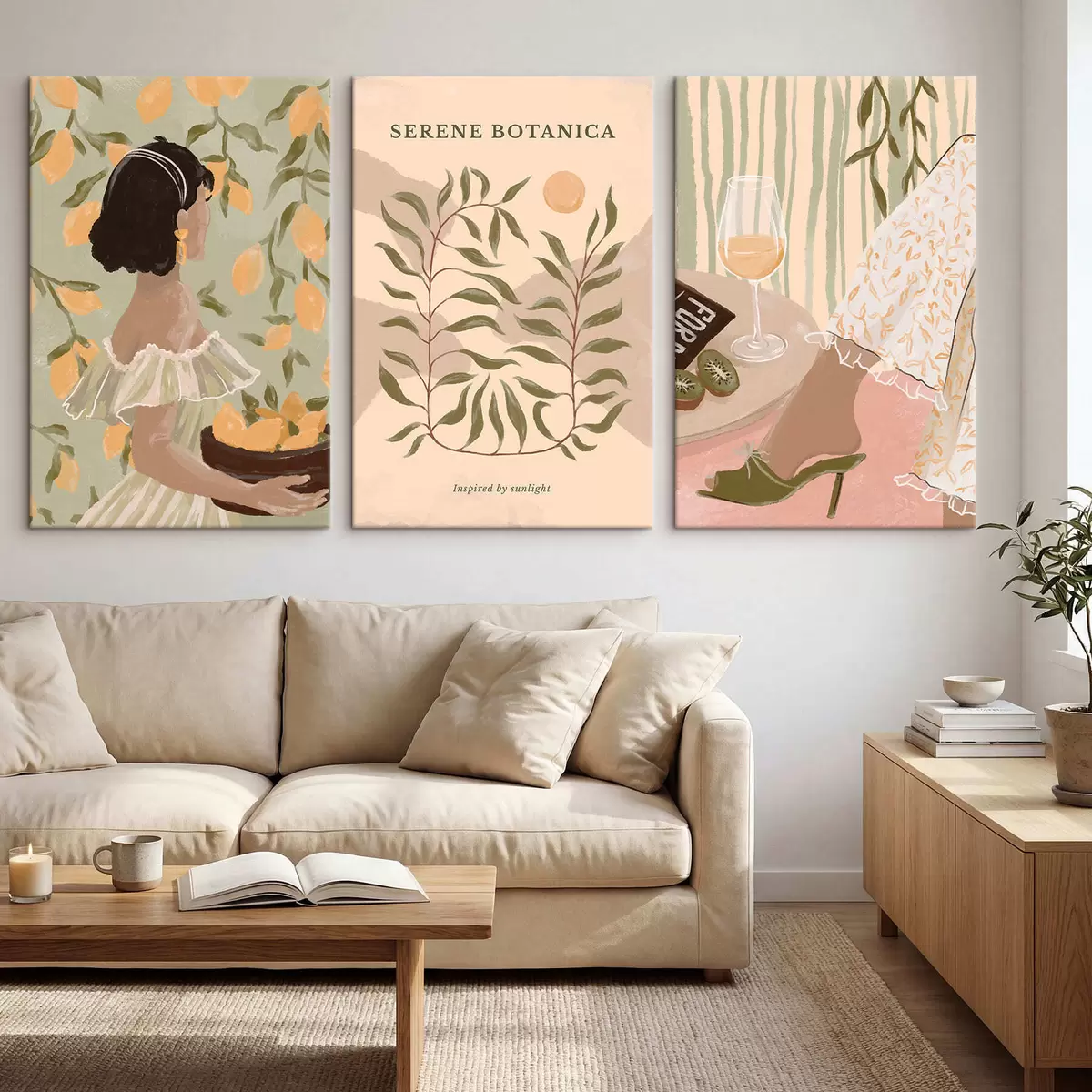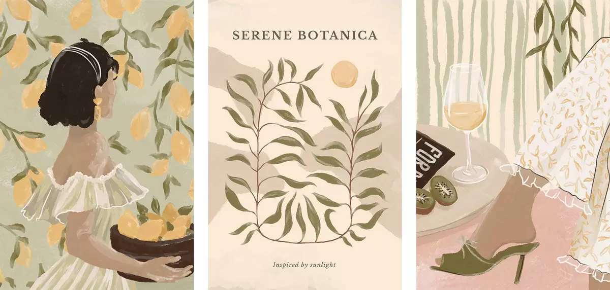 Paveikslas Moteris su citrinomis, plakatu ir stalu Nr m30098