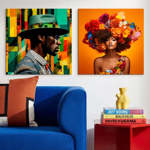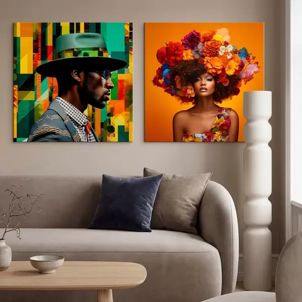 Paveikslas Vyro su skrybėle ir moters su dideliu gėlių vainiku portretas Nr m30102