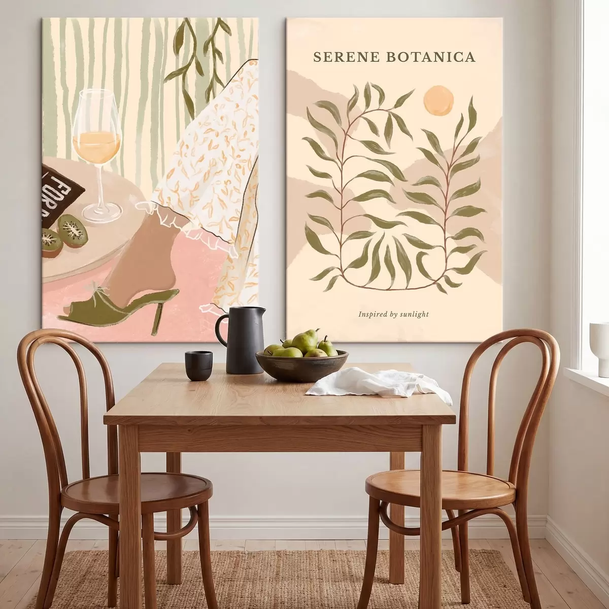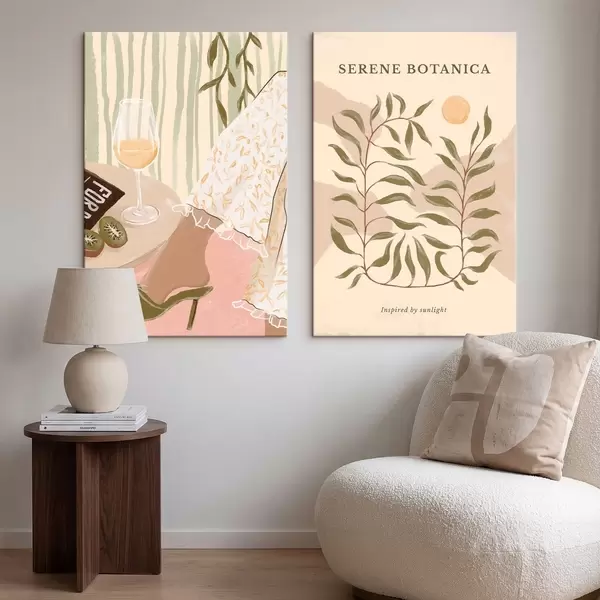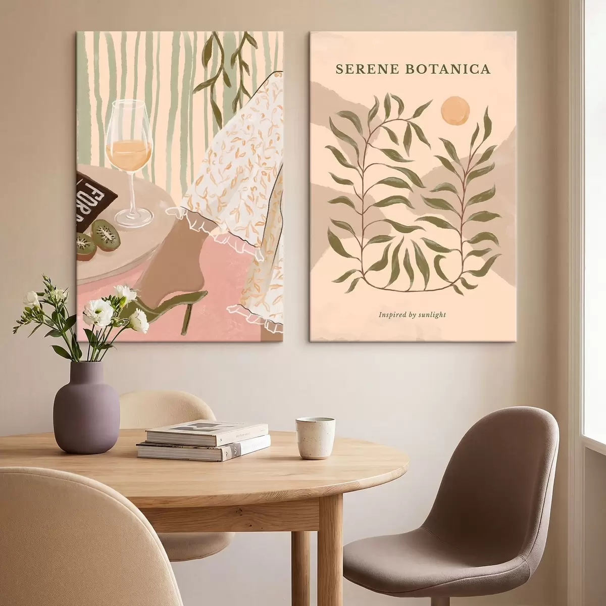 Paveikslas Vyno taurė ir botanikos plakatas šalia Nr m30106