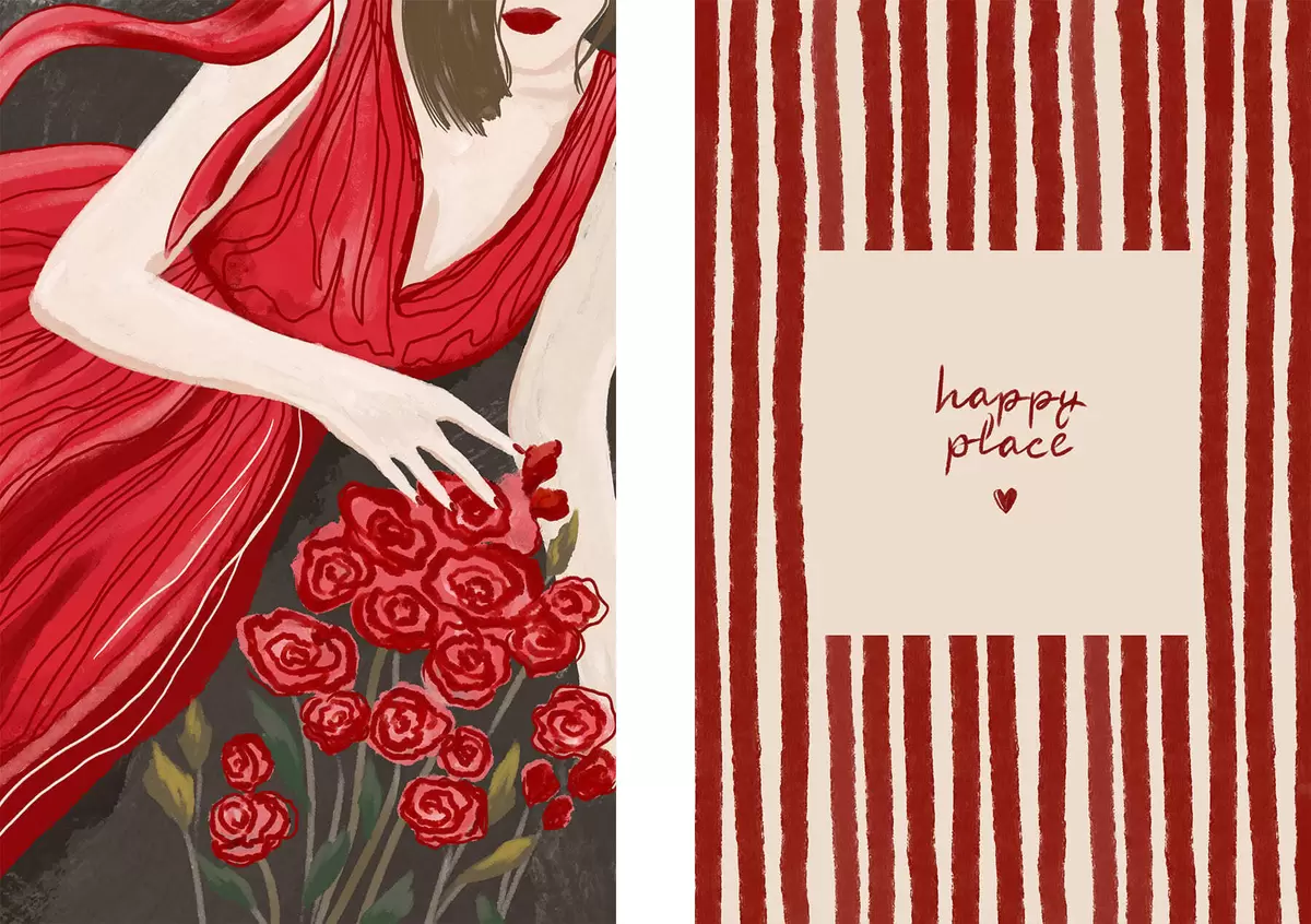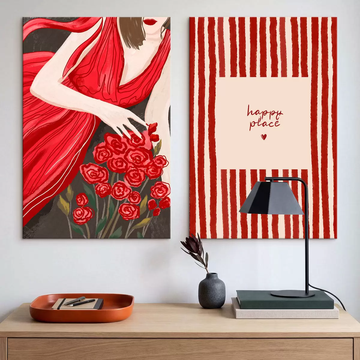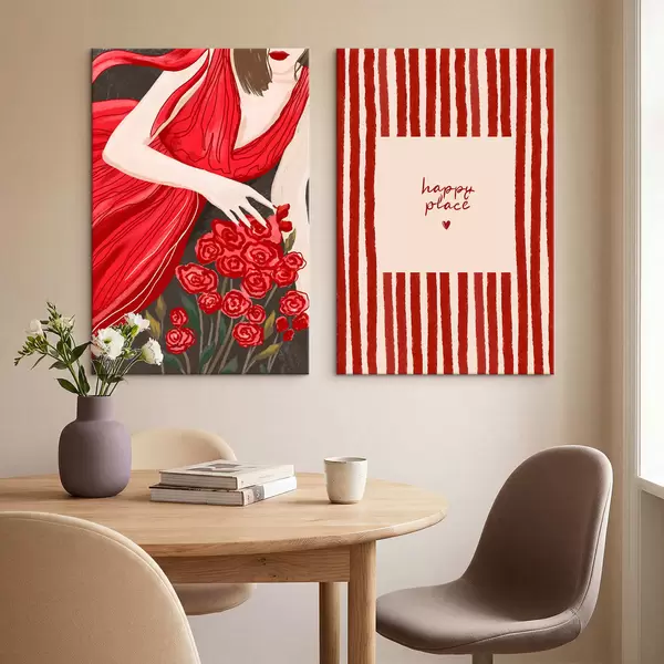 Paveikslas Moteris su rožėmis ir raudonu raštu Nr m30107