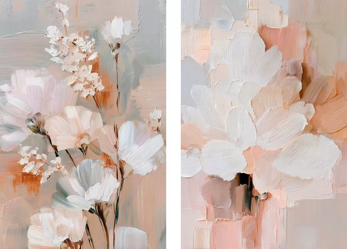 Paveikslas Abstrakčios šviesos gėlės, nutapytos išraiškingais potėpiais šiuolaikinio meno stiliumi Nr m30137