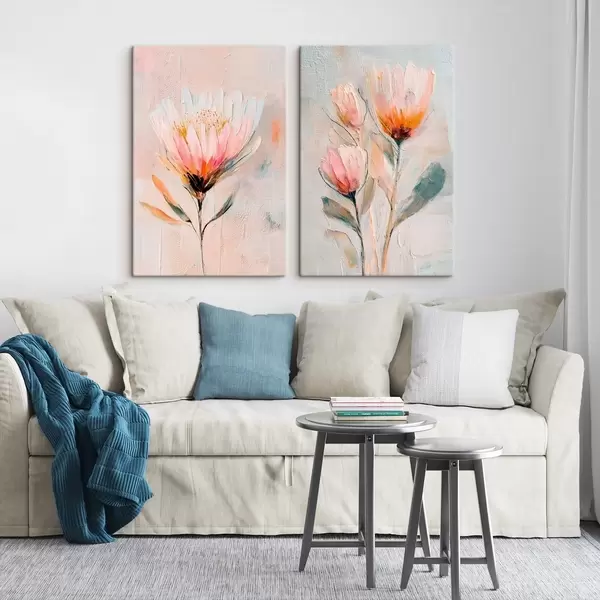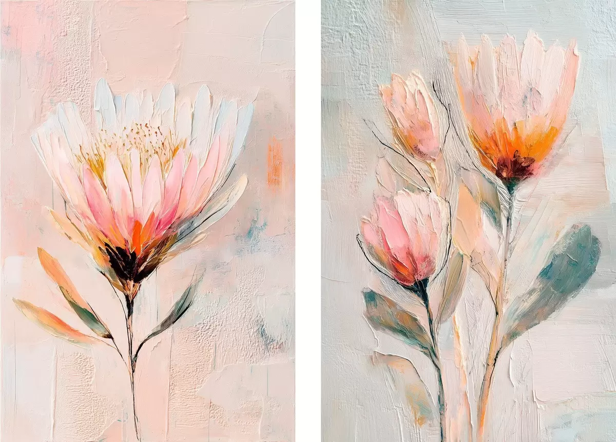 Paveikslas Gėlių kompozicija pastelinėmis spalvomis su tūriniais potėpiais šiuolaikinio meno stiliumi Nr m30140