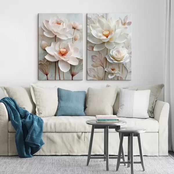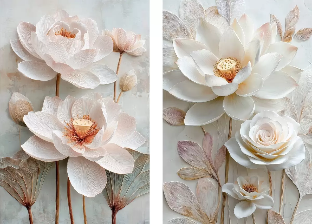 Paveikslas Išgryninta gėlių kompozicija su reljefiniais žiedlapiais, atlikta 3D iliustracijos stiliumi Nr m30143