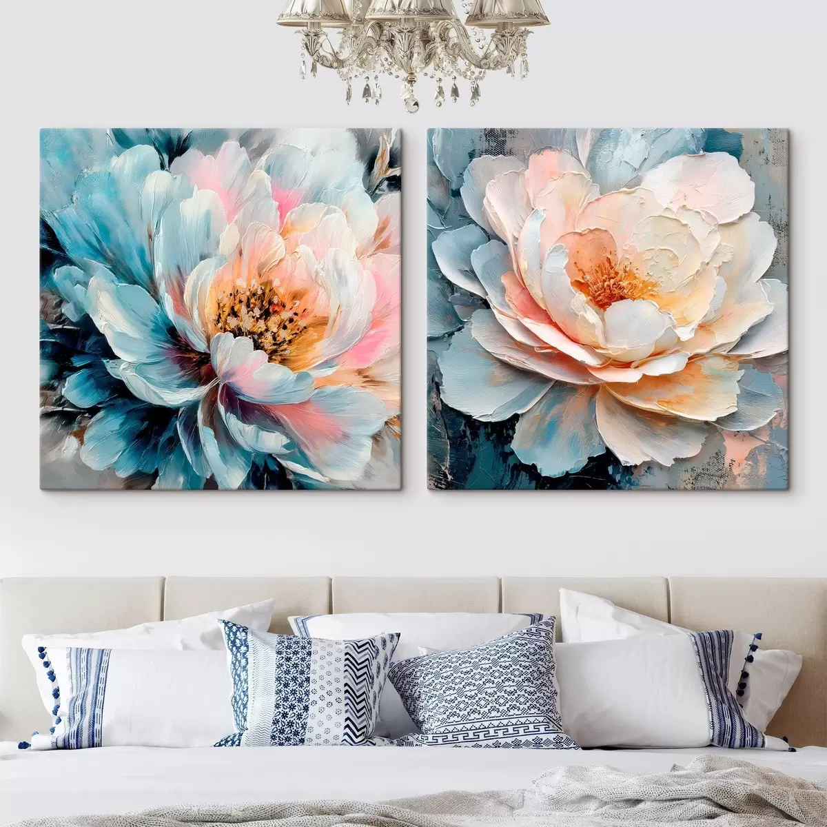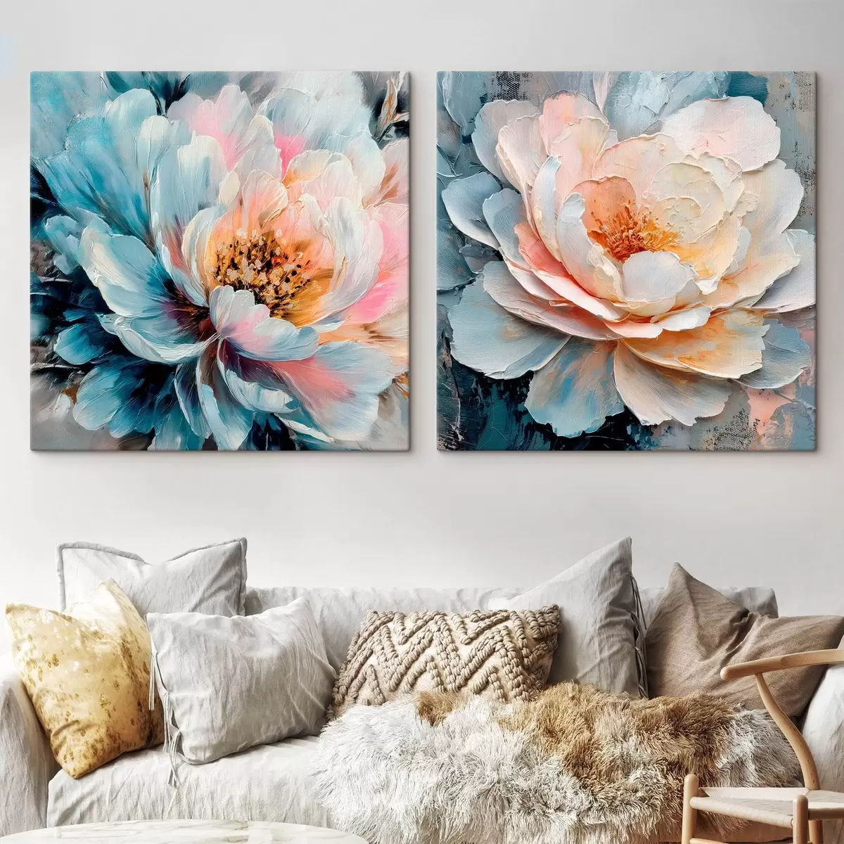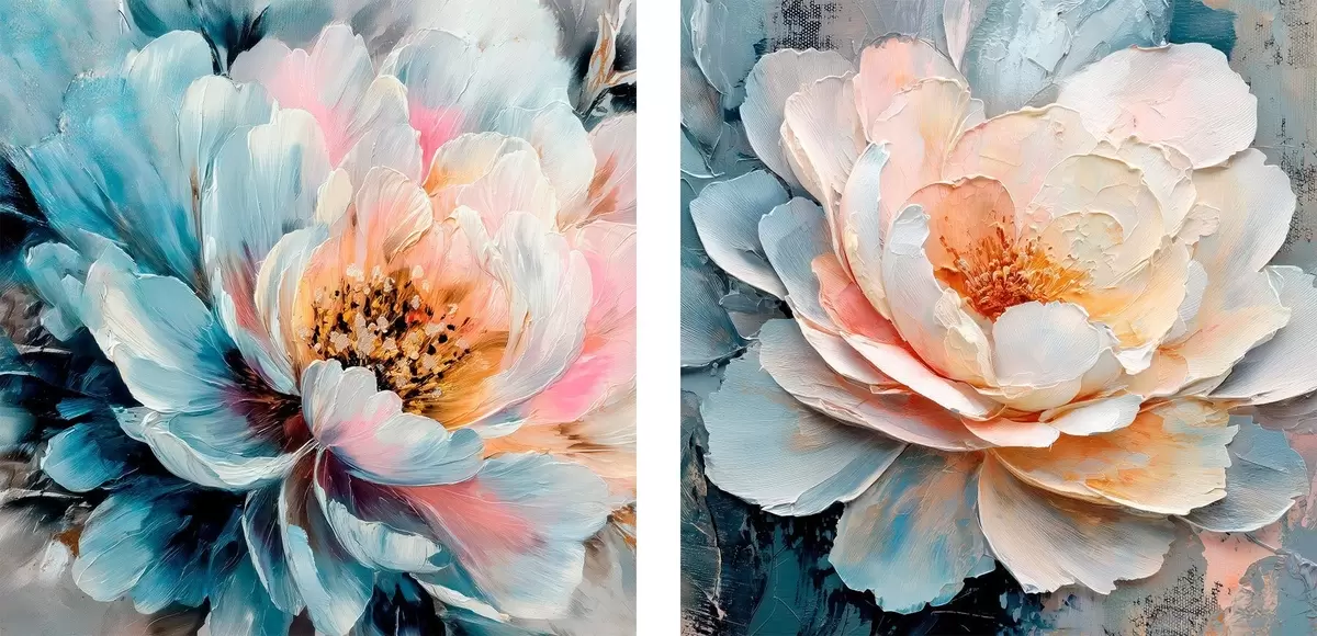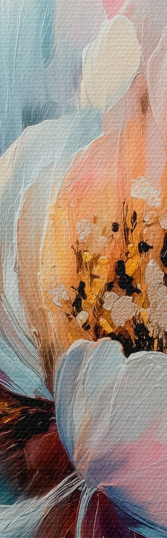 Paveikslas Abstrakti gėlių kompozicija rožinės ir mėlynos spalvų paletėje su tekstūruotais žiedlapiais Nr m30148
