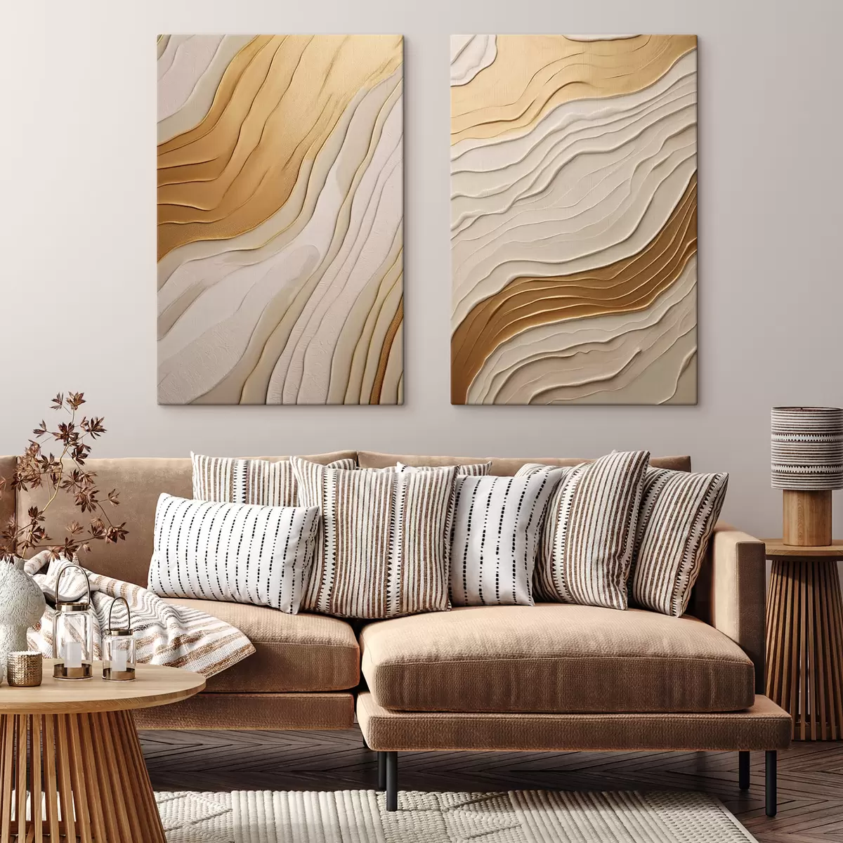 Galima užsakyti trijų rūšių medžiagą: "Economic Canvas" - tanki ir patvari medžiaga skaitmeninei spaudai, identiška dailininko drobės medžiagai, vandeniui atsparus paviršius, tikroviškas detalių atkūrimas, vidutinio grūdėtumo medžiaga. Premium Canvas - tekstūra primena dailininko drobę (susipynę smulkūs siūlai). Minkštas, detalus vaizdo atkūrimas ant matinio paviršiaus. Eco-Premium - aukštos kokybės 100 % medvilninis audinys. Dėl natūralių medvilnės pluoštų medžiaga yra patvari ir atspari nusidėvėjimui. Puikus spalvų atkūrimas ir detalumas.