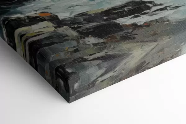 Paveikslas Uolėta pakrantės peizažas su bangomis po debesuotu dangumi, tapybos stilius Nr m30198