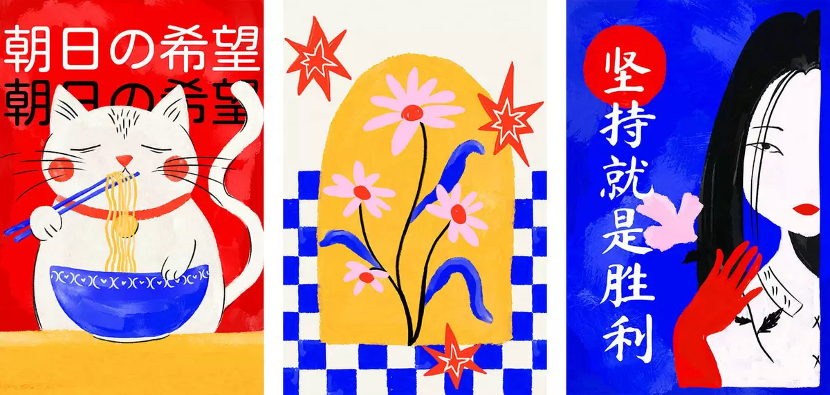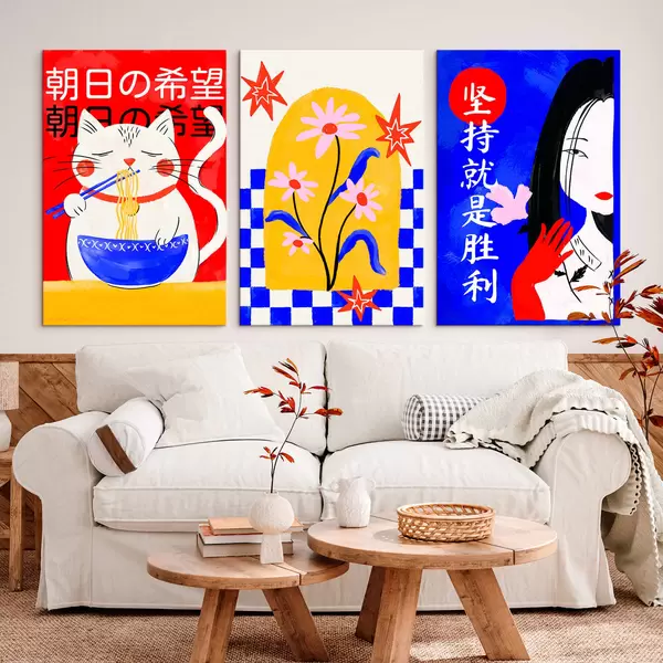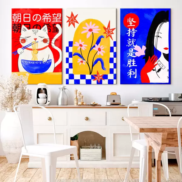 Paveikslas Triptikas su katės, žuvies ir moters portretais Nr m30240