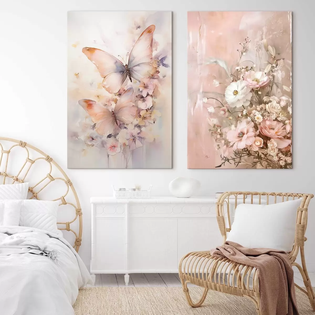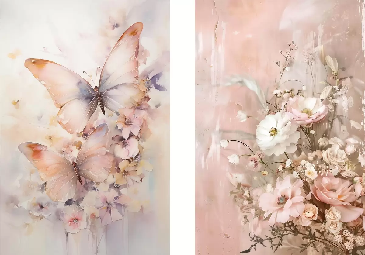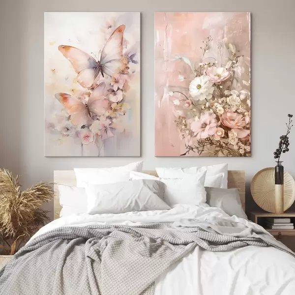 Paveikslas Gėlės su drugeliais, subtilus interjeras Nr m30267