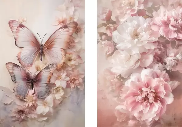Paveikslas Rožinės gėlės, romantiškas stilius Nr m30268