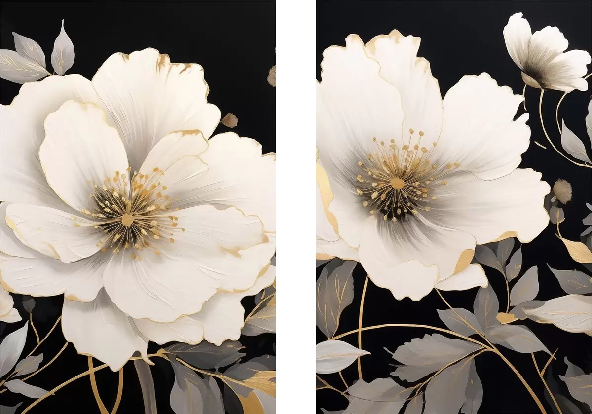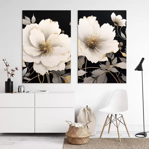 Paveikslas baltos gėlės juodame fone Nr m30280