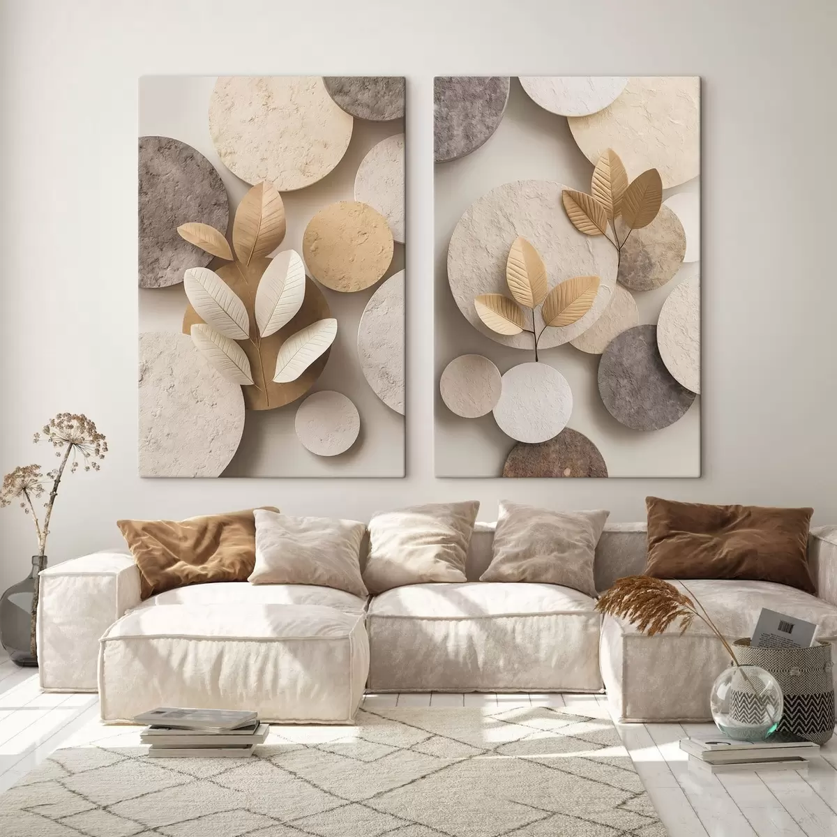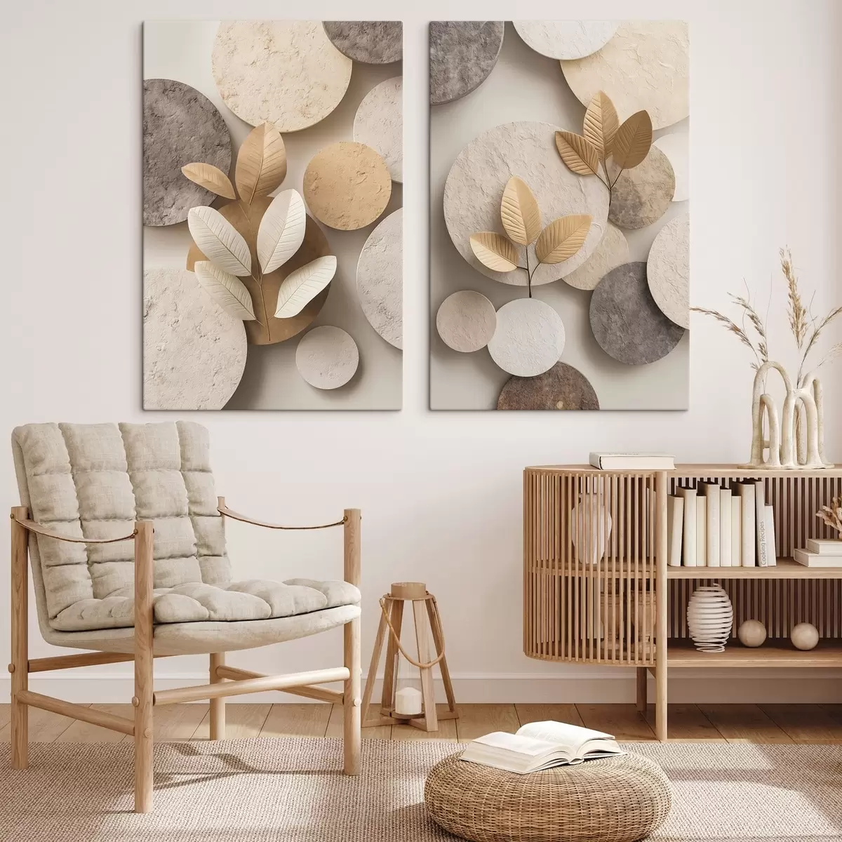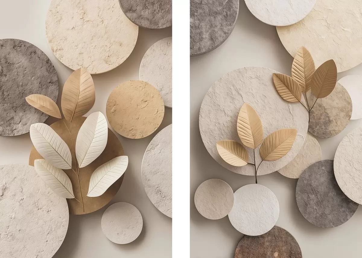 Paveikslas Kompozicijos su lapais ir apskritimais Nr m30292