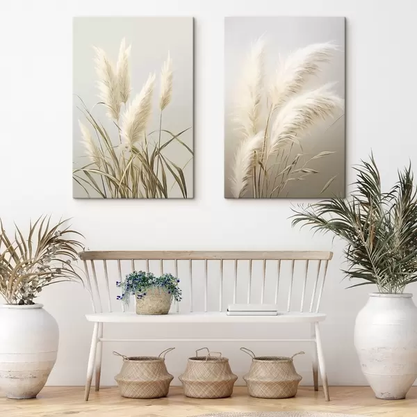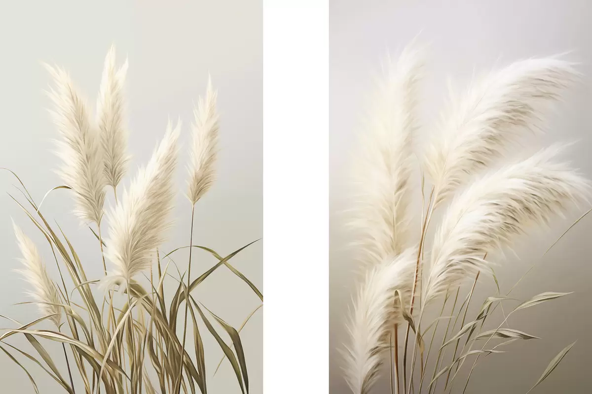 Paveikslas Keletas aukštų, plunksniškų pampų žolių su ilgais, plonais lapais Nr m30312