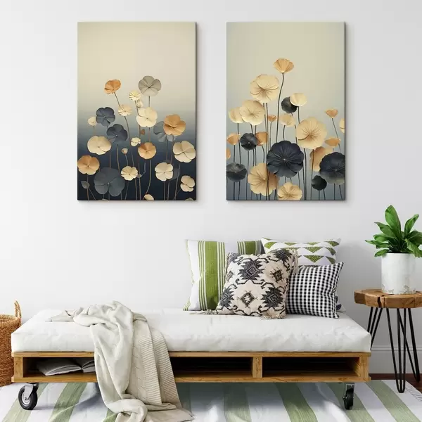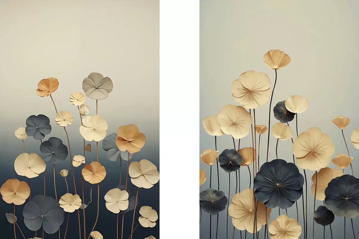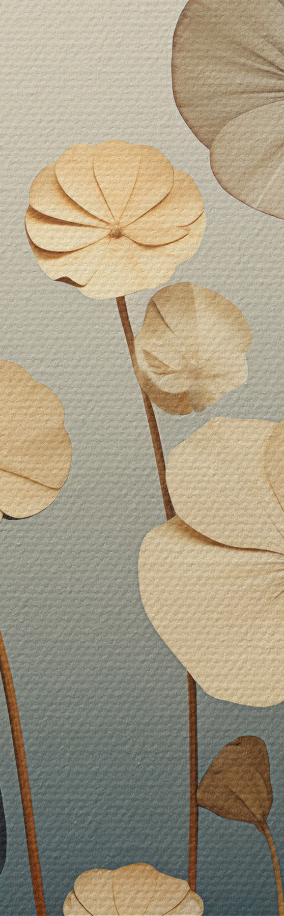 Paveikslas Vandens lelijų lapai prieš švelnų smėlio ir tamsiai mėlynos spalvų foną Nr m30317