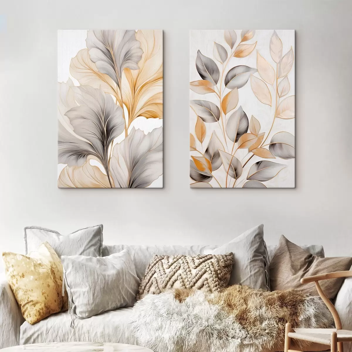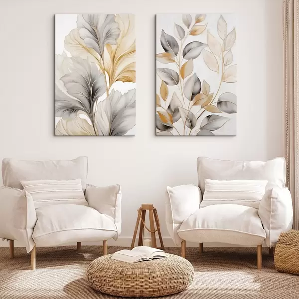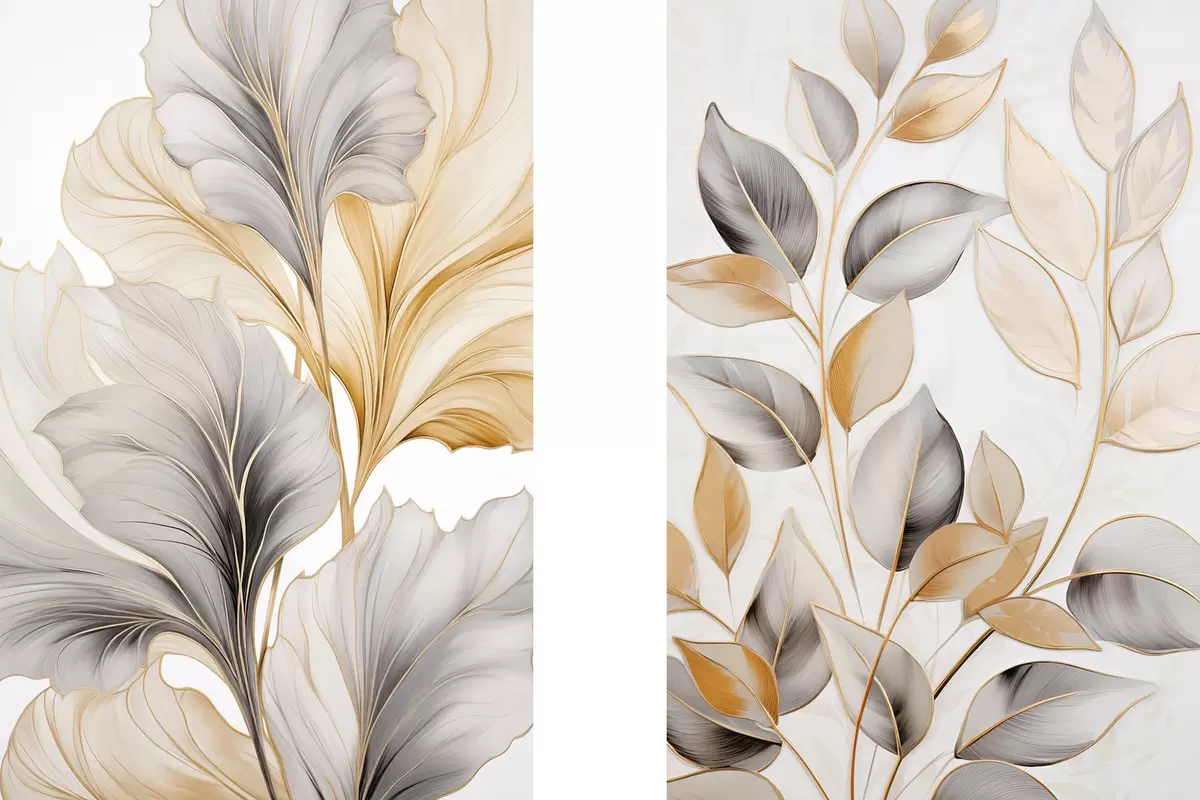 Paveikslas Dideliai, permatomi lapai, kurių spalvos svyruoja nuo pilkos iki geltonos Nr m30323