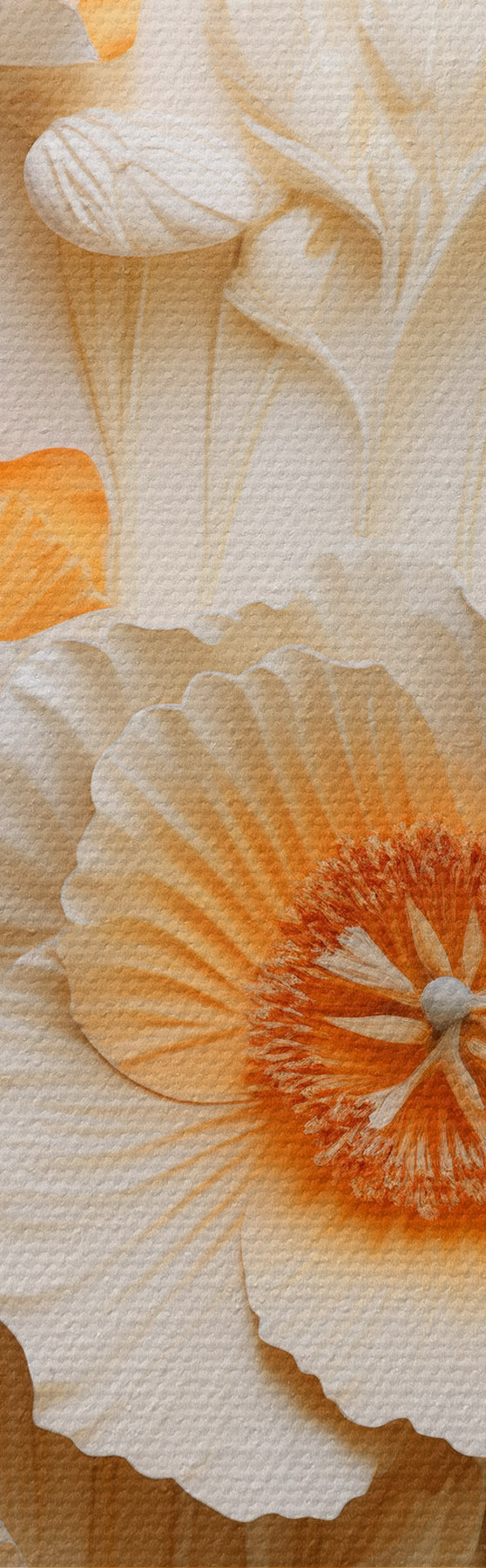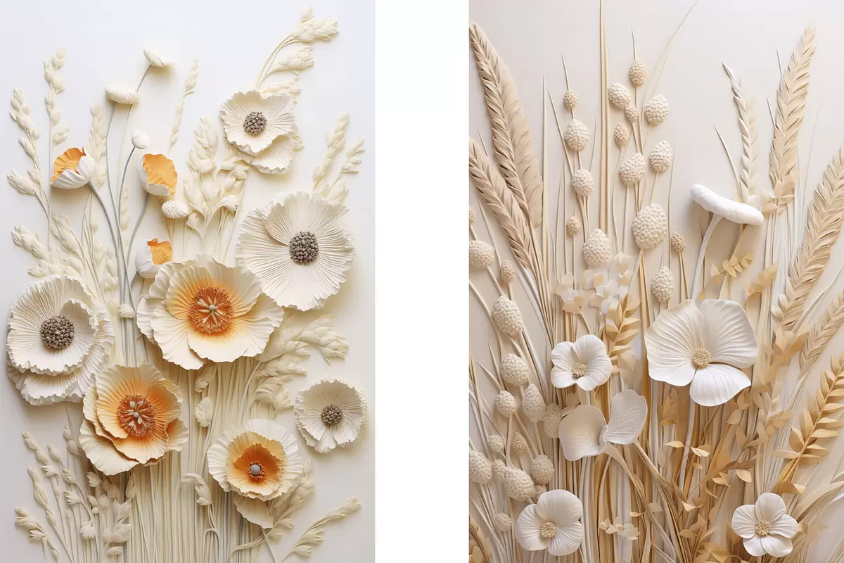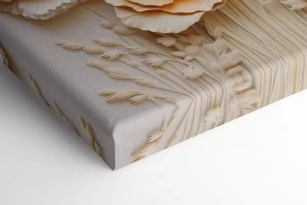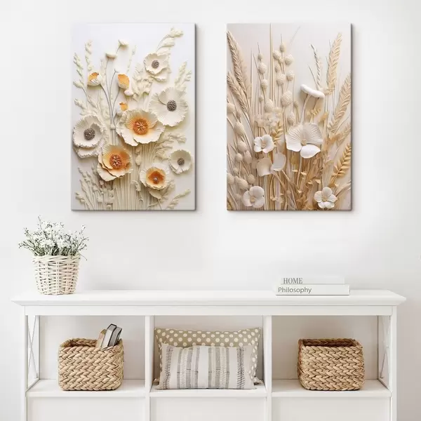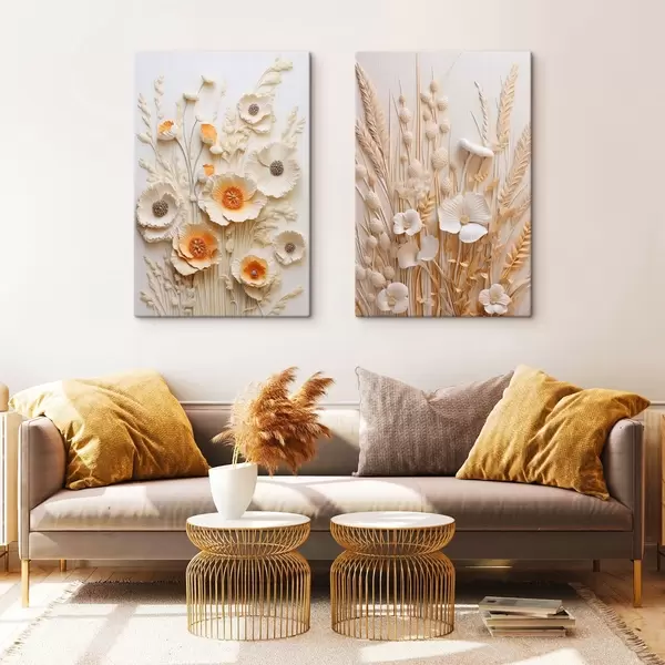 Paveikslas Kreminių ir oranžinių aguonų puokštė su džiovintomis kviečių stiebais Nr m30324